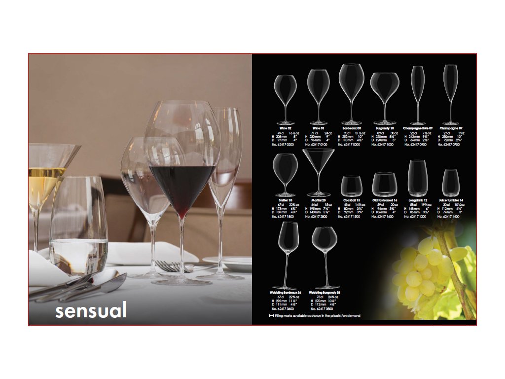 Na rozdiel od väčšiny konkurentov si Rona stále udržuje široký výber ručne vyrábaných výrobkov a táto zmyselná kolekcia môže odpovedať na otázku, prečo je to tak. Extrémne tenké prevedenie tzv. "mušelín“ v kombinácii s náročným tvarom tejto línie znemožňuje byť reprodukovaný strojovo. Aj keď Sensual nikdy nenahradí odolnejšie a cenovo prístupnejšie produkty, v živote sú chvíle, kedy chcete držať práve toto mimoriadne sklo